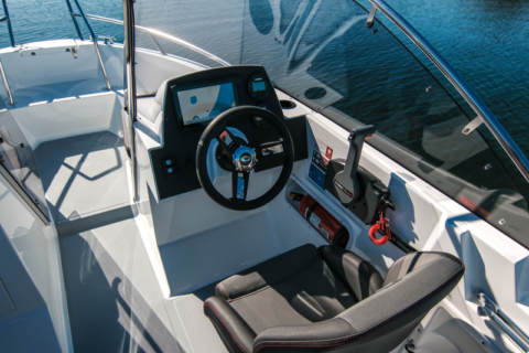 Båten har tydligt markerade passager för säker vistelse ombord och passagerarutrymmena är bekväma. Båten inhyser även goda förvaringsutrymmen och särskilda platser för all båtutrustning. Liksom hos AMT-båtarna överlag, är standardutrustningen omfattande. Mellan de två ergonomiskt designade styrpulpeterna står som standard en stadig enkel mellandörr, som förbättrar vindskyddet för passagerarutrymmet. Integrerade Abloy-lås, akterns dynserie, fenderställ, en 60 liters bränsletank och 9’’ Garmin-kartplotter ingår som standard. Bakom akterbänken finns ett rymligt kapellgarage och vid sittgruppen är det möjligt att installera ett separat bord med stativ. Själva bordskivan ingår som standard (utgörs av BB-pulpetens frontskiva), men stativet bör köpas separat.